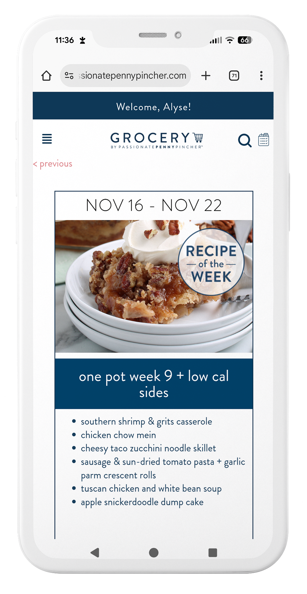 Scroll through and choose the recipes that look good to you. Adding the full week to your shopping list or one recipe at a time.